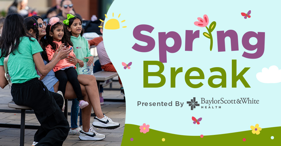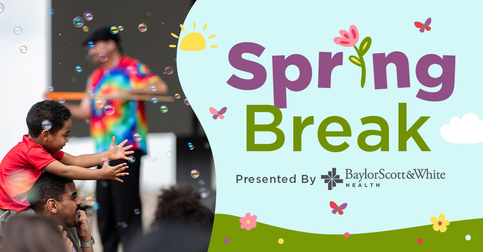 Stage & Lawn 5752 Grandscape Blvd., The Colony, TX, United StatesJoin us Wednesday, March 18 from 11:00am-12:00pm as we get ready to pop, giggle, and float into fun with Spring Break: Next Level Bubble Show, presented by Baylor Scott & White Health!